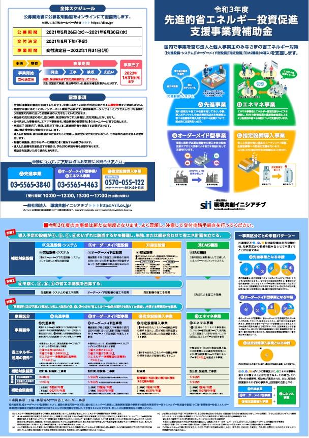 令和3年度「先進的省エネルギー投資促進支援事業」の概要は、以下のパンフレットをご確認ください。