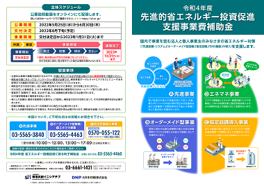 令和4年度「先進的省エネルギー投資促進支援事業費補助金」の概要は、以下のパンフレットをご確認ください。