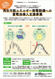 平成30年度補正予算 災害時にも再生可能エネルギーを供給力として稼働可能とするための蓄電池等補助金(再生可能エネルギー発電設備への蓄電池導入支援事業)公募情報