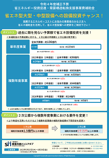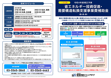 詳細については後日ご案内いたします。なお、「省エネルギー投資促進支援事業費補助金」(指定設備)は予算を超える申請があったため、3次公募を実施する予定はありません。