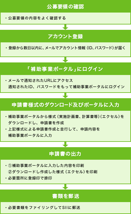 交付申請はSIIが提供する「補助事業ポータル」(WEB)を活用して行っていただく必要があります。